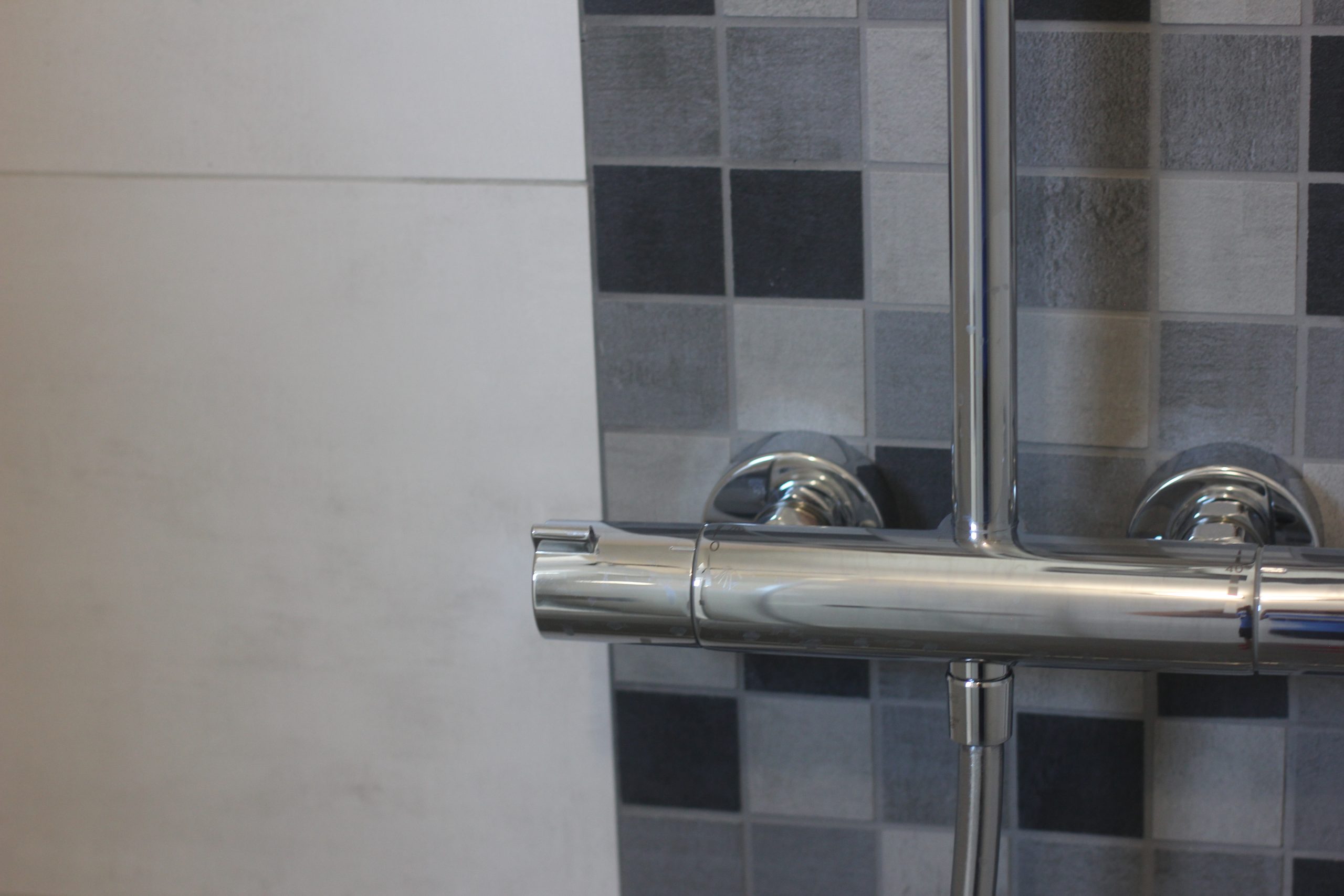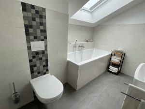 - ein Badezimmer mit großer Wellness-/Regendusche und Badewanne,