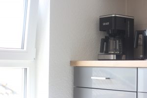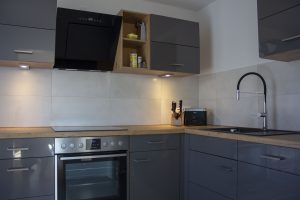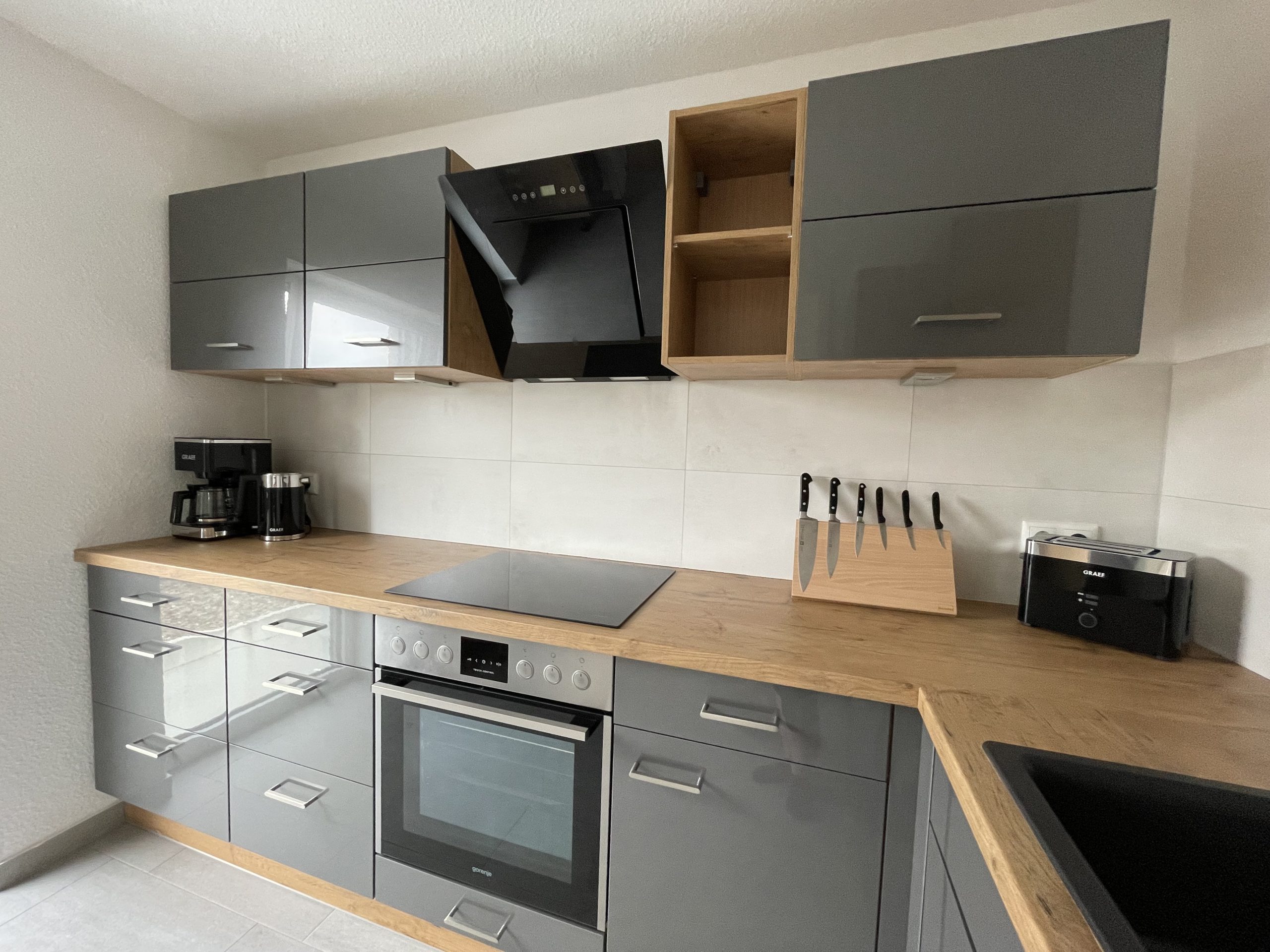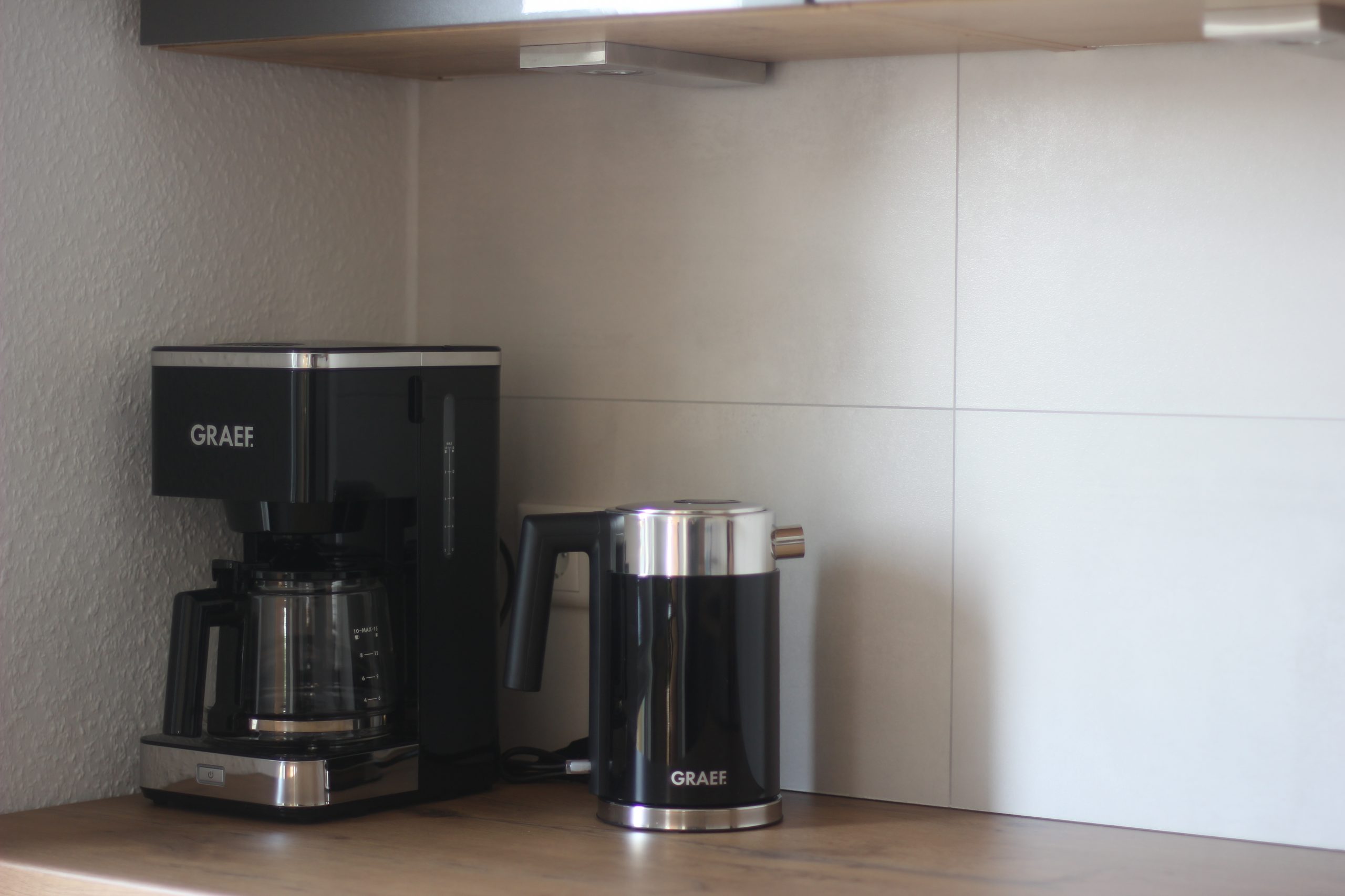 - eine vollausgestattete Küche mit Kaffeemaschine, Toaster, Backofen, Ceranfeld, Geschirrspüler und Wasserkocher,